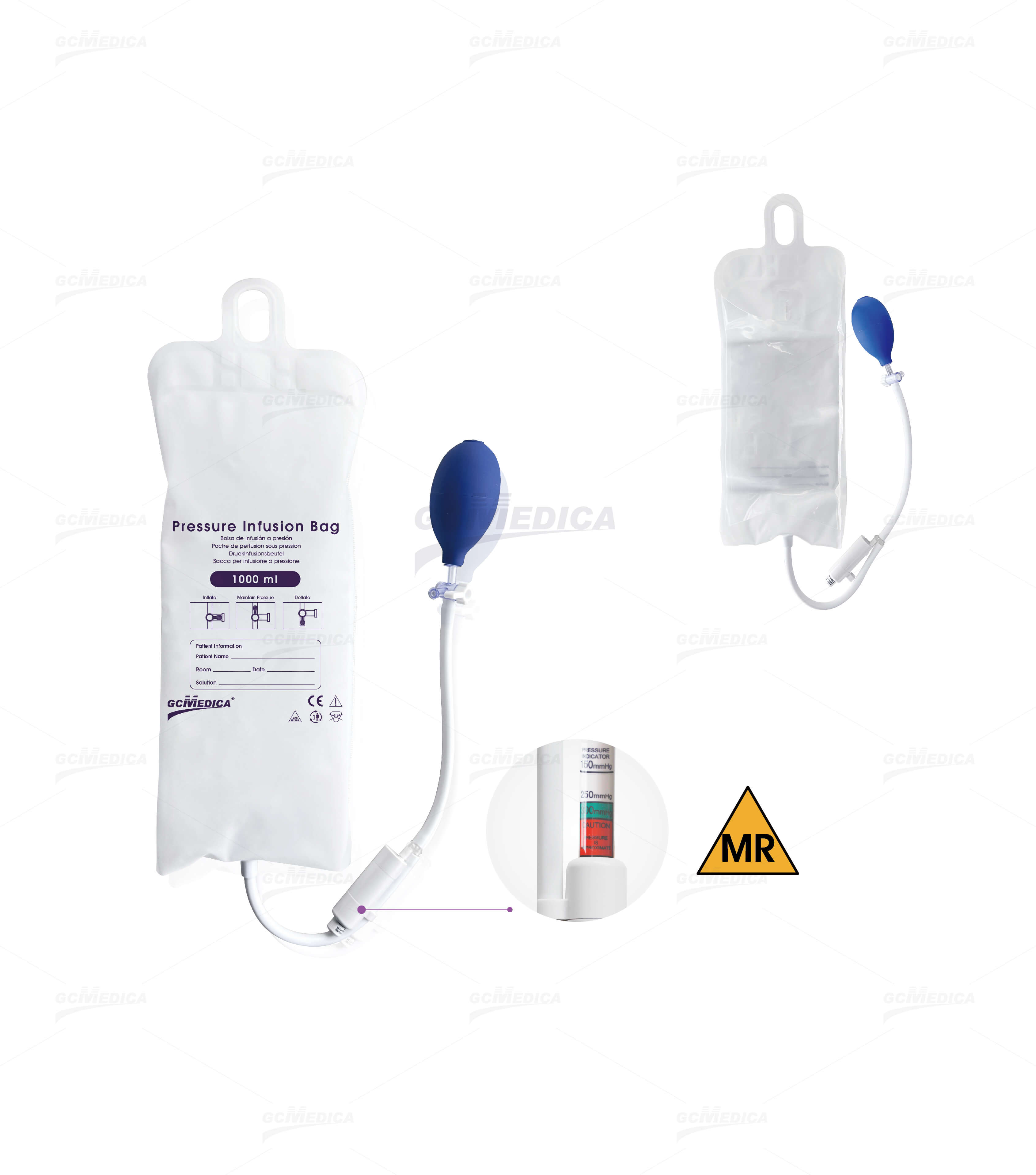 · Un patient peut être examiné en toute sécurité par IRM alors que la poche de perfusion sous pression se trouve dans l'environnement IRM ou à l'intérieur du tunnel de l'appareil, sous réserve du respect des conditions spécifiées par le fabricant. Le non-respect de ces conditions est susceptible d'entraîner des blessures pour le patient.